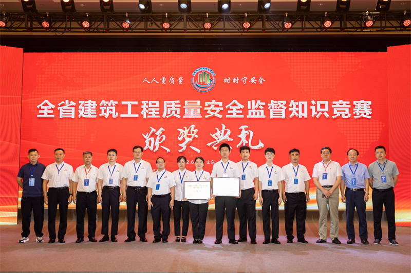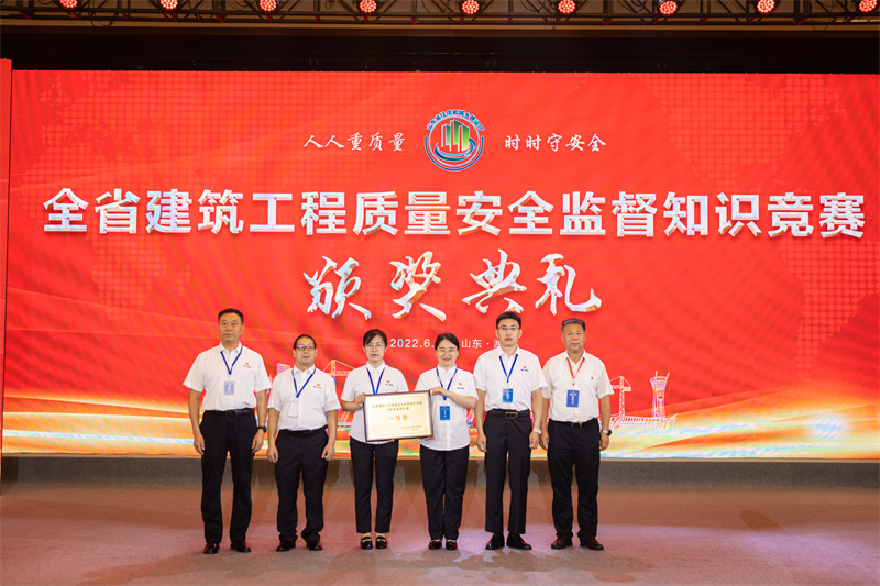 6月30日,山東省建筑工程質(zhì)量安全監(jiān)督知識競賽爭冠賽在濰坊舉行,集團公司副總裁周兵一帶隊參加,經(jīng)過“搶灘登陸”、“勇往直前”、“火眼金睛”等環(huán)節(jié)的激烈比拼,集團公司質(zhì)量團隊、安全團隊脫穎而出,分別獲得爭冠賽團隊一等獎。