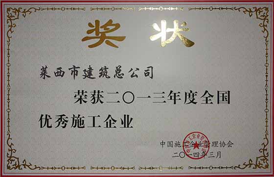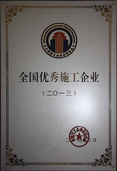 2014年4月17日至19日,中國(guó)施工企業(yè)管理協(xié)會(huì)在江蘇南京召開(kāi)第29次年會(huì),會(huì)上通報(bào)表彰了榮獲2013年度“全國(guó)優(yōu)秀施工企業(yè)”、“全國(guó)工程建設(shè)優(yōu)秀項(xiàng)目經(jīng)理”的先進(jìn)單位和個(gè)人,我公司再次再次獲得“全國(guó)優(yōu)秀施工企業(yè)”榮譽(yù)稱(chēng)號(hào),一公司董建明總經(jīng)理被評(píng)為“全國(guó)工程建設(shè)優(yōu)秀項(xiàng)目經(jīng)理”。