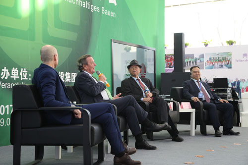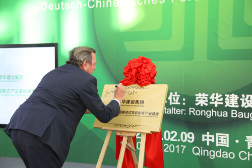 德國前總理施羅德先生應榮華建設集團和中德生態(tài)園管委的邀請于2月8日開始對青島為期四天的訪問之旅,出席由我集團主辦的中德可持續(xù)建設論壇,并為集團的被動房及裝配式產業(yè)基地揭牌,集團董事長孫涌同志全程陪同。集團總裁趙成福、副總裁張行良、總裁助理周兵一、副總工程師楊自統(tǒng)、三公司總經理于永剛、中德聯合被動房有限公司總經理聶建衛(wèi)一起參加。