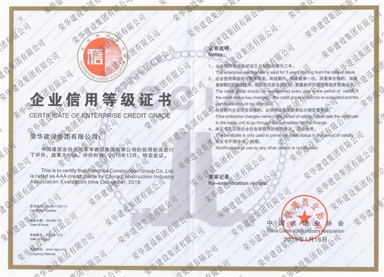 近日中國建筑業(yè)協(xié)會對我集團信用狀況進行了專業(yè)化考評,我集團憑借優(yōu)異的經(jīng)營管理能力、良好的社會誠信,評定結(jié)果為AAA級,蟬聯(lián)“全國建筑業(yè)AAA級信用企業(yè)”。