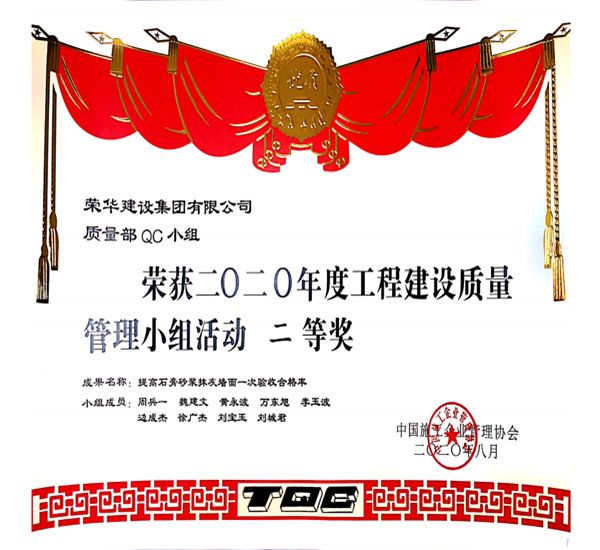8月31日,中國施工企業(yè)管理協(xié)會公布2020年度工程建設(shè)優(yōu)秀質(zhì)量管理小組名單,集團(tuán)公司質(zhì)量部QC小組成果“提高石膏砂漿抹灰墻面一次驗收合格率”榮獲二等獎。
