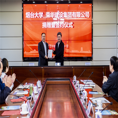 11月18日上午,煙臺(tái)大學(xué)、榮華建設(shè)集團(tuán)有限公司捐贈(zèng)暨簽約儀式舉行。榮華建設(shè)集團(tuán)通過(guò)青島市慈善總會(huì)向煙臺(tái)大學(xué)捐贈(zèng)100萬(wàn)元,設(shè)立“煙臺(tái)大學(xué)榮華教育發(fā)展基金”,用于榮華希望獎(jiǎng)學(xué)金、榮華創(chuàng)新勵(lì)志獎(jiǎng)學(xué)金、榮華創(chuàng)新創(chuàng)業(yè)獎(jiǎng)學(xué)金等。青島市慈善總會(huì)會(huì)長(zhǎng)王偉,榮華建設(shè)集團(tuán)黨委書(shū)記、董事長(zhǎng)孫涌,煙臺(tái)大學(xué)黨委書(shū)記、教育發(fā)展基金會(huì)理事長(zhǎng)張偉出席捐贈(zèng)儀式,煙臺(tái)大學(xué)副校長(zhǎng)郝曙光主持。