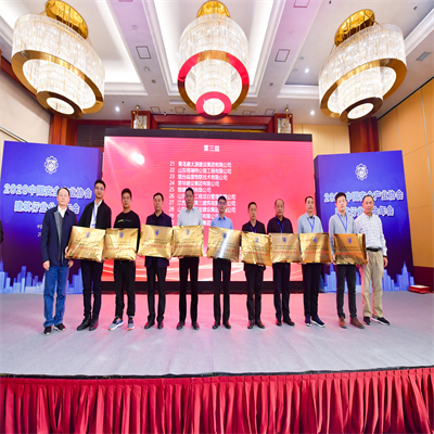 會(huì)上,榮華建設(shè)集團(tuán)有限公司榮獲2020年中國(guó)安全產(chǎn)業(yè)建筑行業(yè)安全生產(chǎn)標(biāo)準(zhǔn)化企業(yè);六公司張少杰項(xiàng)目部承建的海信國(guó)際中心項(xiàng)目榮獲中國(guó)安全產(chǎn)業(yè)建筑行業(yè)安全生產(chǎn)標(biāo)準(zhǔn)化項(xiàng)目;四公司徐德峰經(jīng)理榮獲“2020年中國(guó)安全產(chǎn)業(yè)建筑行業(yè)安全生產(chǎn)標(biāo)準(zhǔn)化帶頭人”稱(chēng)號(hào)。集團(tuán)公司周兵一副總裁及六公司張少杰經(jīng)理分別上臺(tái)領(lǐng)獎(jiǎng)。