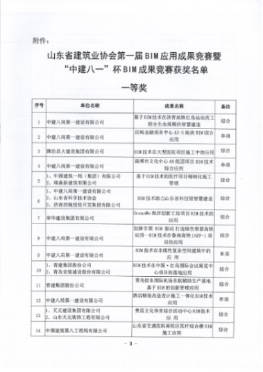 集團榮獲“山東省建筑業(yè)協(xié)會第一屆BIM應用成果競賽”一等獎